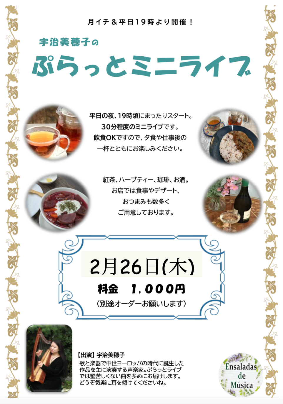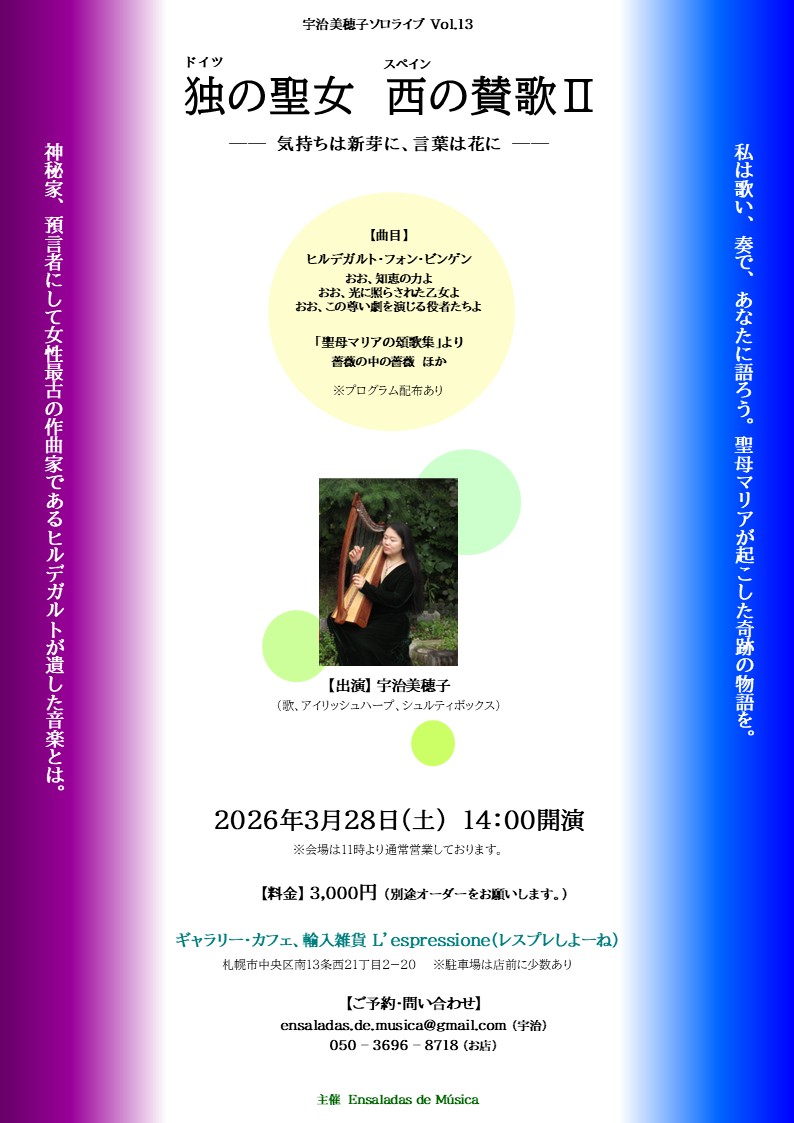 2025年11月11日2025年11月13日イベントスケジュール、おすすめ情報、コンサート 宇治美穂子の「ぷらっとミニライブ」11月20日(木)19:00〜 中世音楽を研究する宇治美穂子さんの、30分程 […]